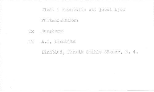 //// •ladt i Frantzila ett jubel Ljöd • Fältoesskalken //// 2x äuneberg //// 12c Å.J. Lindblad //// Lindblad, Fänrik Stålls Söner, H. 4. ////