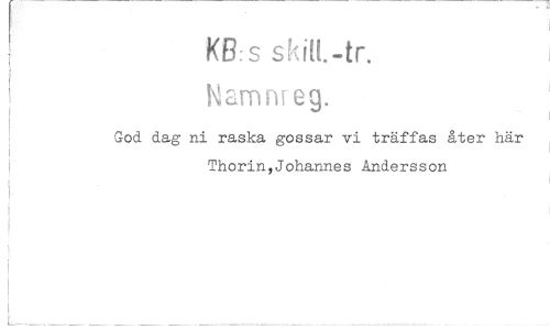 //// KB: s //// NaMfIr eg. //// God dag ni raska gossar vi träffas åter här Thorin,Johannes Andersson ////