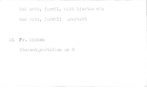 //// God natt, farvU, lidtt hjertas v/3. God Hatt, farvl-a: ,,yartett //// Ik rr. Lticken Studentqvartotten ur 8 ////
