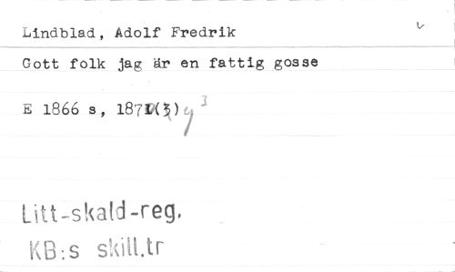 //// Lindblad, Adolf Fredrik //// Gott folk jag är en fattig gosse //// E 1866 s, 187U3K, //// [Atskald -reg, //// K S skilt tr ////