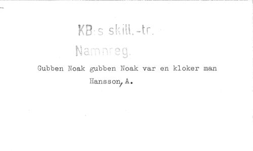 //// KB:s s i //// N - i //// Gubben Noak gubben Noak var en kloker man Hansson A. ////