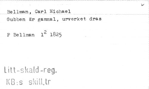 //// Bellman, Carl Michael //// Gubben är gammal, urverket dras //// F Bellman 12 1825 //// titt-skald-reg, //// KB:s s tr ////