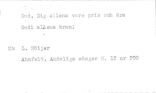 //// Gud, Dig allena vare pris och ära Gudi allena äran! //// Tik L. Höijer //// Ahnfelt, Andeliga sånger H. 12 nr 200 ////