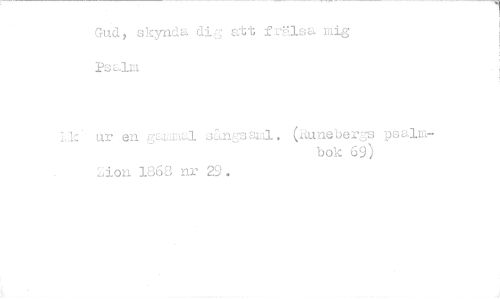 //// Gud, skynda dig att frUsa mig Psalm //// Lk ur en rak_ml sEL=s1d1. (Itunebergs psalm- //// bok 69 //// Zion 1868 nr 29. ////