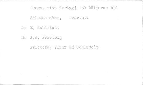 //// Gunga., mitt fartyg; 'på böljorna blå Sjömans sång. ',17artett: //// Sehlstedt //// Lk J.A. Frieberg //// Friebergy Visor af Sehlstedt ////