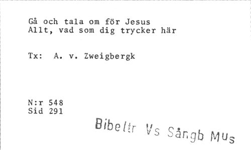 //// Gå och tala om för Jesus Allt, vad som dig trycker här //// Tx: A. v. Zweigbergk //// N:r 548 //// Sid 291 //// Bibettr Vs Sår gb Mus ////