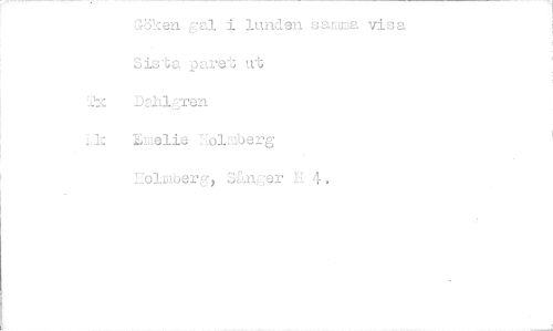 //// Göken gal i lunden sanne visa Sista paret ut //// 2x DpIllgren //// Imelie Holmberg //// 'Holmberg, Sängar I 4. ////