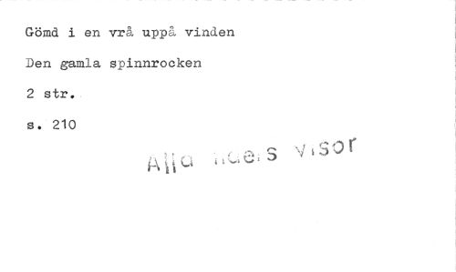 //// Gömd i en vrå uppå vinden Den gamla spinnrocken //// 2 str.. //// s. 210 //// k it el s 0 r ////