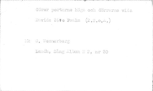 //// Görer -oortarne h'(5,--;a och dörrarne vida Davids 24* e Psalm (2.S.o,..å..) //// Lazd, ennerberg //// Lundh, Säng Album E 2, nr 20 ////