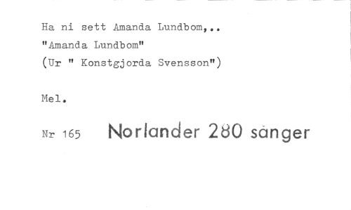 //// Ha ni sett Amanda Lundbom,.. "Amanda Lundbom" //// (Ur " Konstgjorda Svensson") //// Mel. //// Nr 165 Norlander 2d0 sängen ////