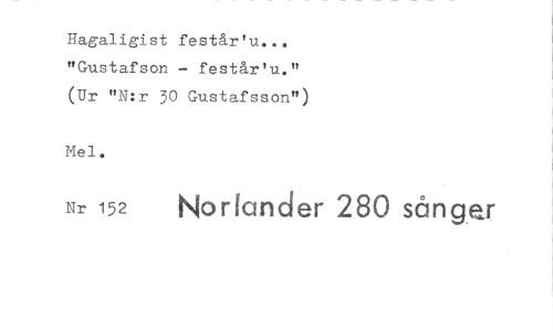 //// Hagaligist festår'u... "Gustafson - festår'u." (Ur "N:r 30 Gustafsson") //// Mel. //// Nr 152 Norlander 280 sånger ////