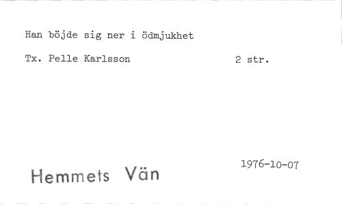 //// Han böjde sig ner i ödmjukhet //// Tx. Pelle Karlsson 2 str. //// Hemmets Vän 1976-10-07 ////