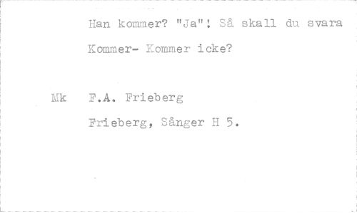 //// Han kommer? "Ja"! Så skall du svara Kommer- Kommer icke? //// Mk F.A. Frieberg Frieberg, Sånger H 5. ////