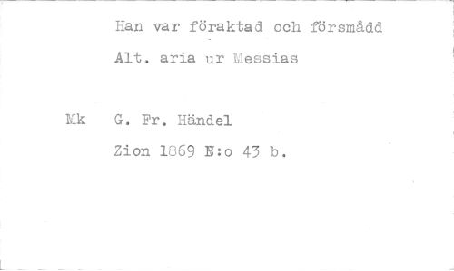 //// Han var föraktad och försmådd Alt. aria ur Messias //// Mk G. Fr. Händel //// Zion 1869 U:o 43 b. ////