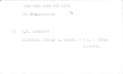 //// rens. koja stod vid sjön :Den SKepp brutne //// A.F. Lindblad //// Lindblad, Sånger o. Visor.. H 8 o. 9 fVen //// Separat. ////