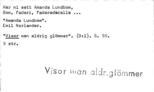 //// Har ni sett Amanda Lundbom, Bom, faderi, faderadåralla //// "Amanda Lundbom". Emil Norlander. //// "Visor man aldrig glömmer". (D:1). S. 55. 5 str. //// Visor hlan aidr.glörnmer ////