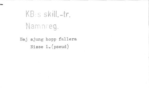 //// Kird 1. //// '12å.-.7,b eg. //// Hej sjung hopp fallera //// Nisse L.(pseud) ////