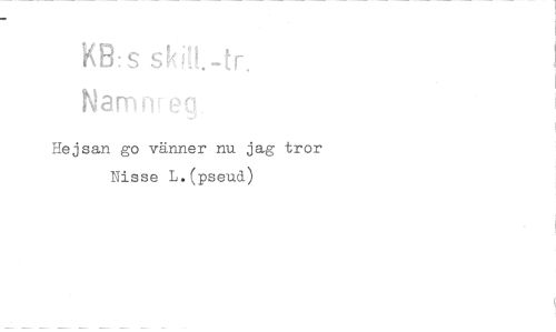 //// KB:s sk //// Namrve. //// Hejsan go vänner nu jag tror //// Nisse L.(pseud) ////