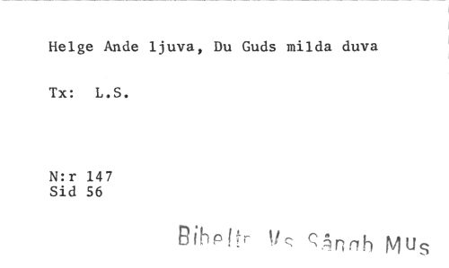 //// Helge Ande ljuva, Du Guds milda duva Tx: L.S. //// N:r 147 Sid 56 //// pihpitr flril-) Mus ////