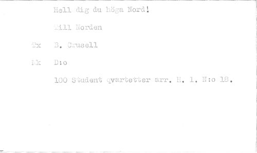 //// Hell dig du liöa Nord! //// All Norden //// '.2x D. jrusell //// Lk D:o //// 100 Student eivartet-Ler arr. Ii. 1. No 18. ////