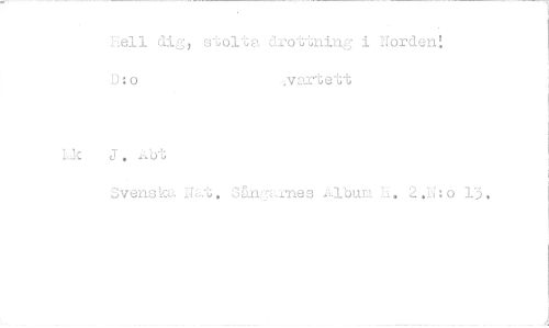 //// Hell dig, stolta drottning i Norden! J:o ,vartett //// Svenska ',Jat. Sänrnes 1.1-bum I. 2.K:o 13. ////