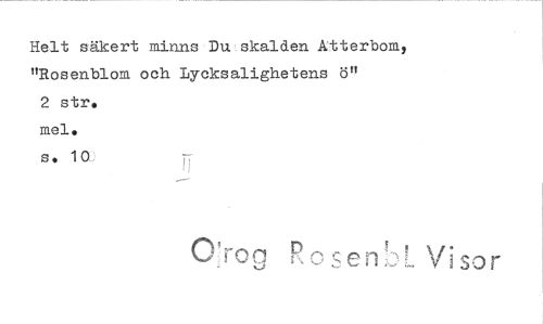 //// Helt säkert minns Du skalden Atterbomy "Rosenblom och Lycksalighetens ött //// 2 str. //// mel. //// s. 10 //// O'rog Rosen!-L' Visor ////
