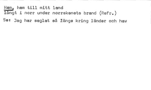 //// 2221 hem till mitt land //// Iäl'igt i norr under norrskenets brand (Refr.) //// Ses Jag har seglat så länge kring länder och hav ////