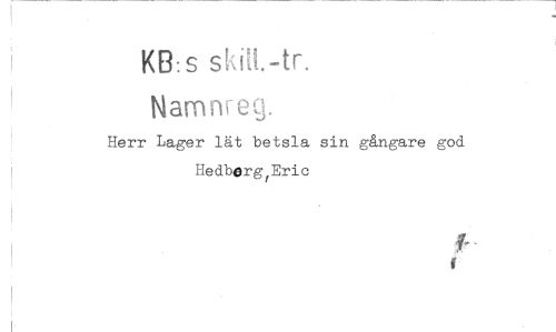 //// KB: s skitt.-tr. //// Namnreg. //// Herr Lager lät betsla sin gångare god HedbergfEric ////