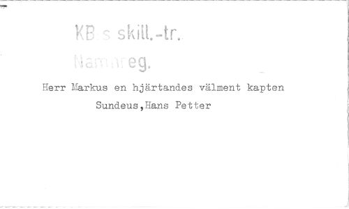 //// s k i //// Herr Markus en hjärtandes välment kapten Sundeus,Hans Petter ////
