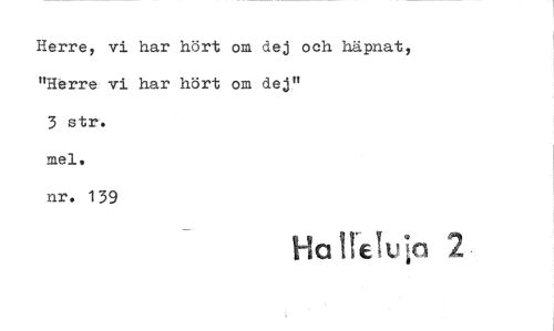 //// Herre, vi har hört om dej och häpnat, "Herre vi har hört om dej" //// 3 str. //// mel. //// nr. 139 //// Ha !kl* 2 ////