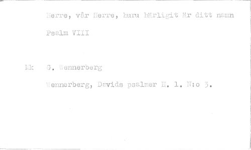 //// erre, vår Herre, huru härligit är ditt namn Psalm VIII //// Lki, ennerberg //// Wennerberg, Dsvids psalmer H. 1. N:0 3. ////