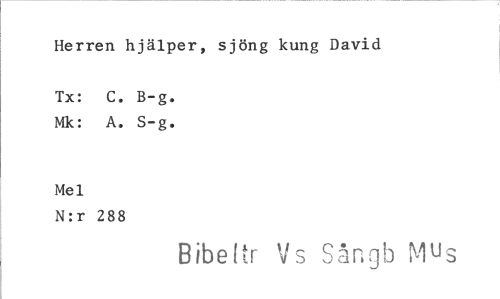//// Herren hjälper, sjöng kung David //// Tx: C. B-g. //// Mk: A. S-g, //// Mel //// N:r 288 //// Bibeltr Vs Sån cib Mus ////