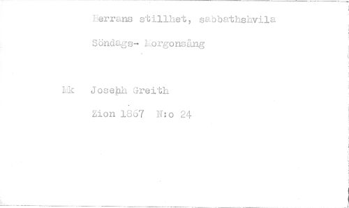 //// herrans stillhet, sabbathshvila Söndags- hbrgonsång //// Lk Josef Jreith 'bion 1867 N:o 24 ////
