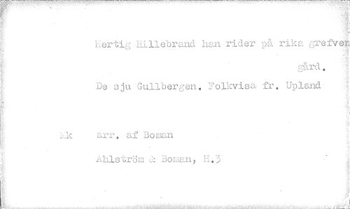 //// N //// Eertig iii liebrand han rider på rika grefvek //// gård. //// De sju Guilbergen. Folkvisa- fr. Upland //// arr. af Boman Ahls.i;röm j: Boman, H.3 ////