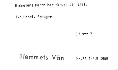 //// Himmelens Herre har skapat din själ. Tx: Henrik Schager //// I3.str ? //// :Hemmets Vän Nr.38 13.9 1959 ////