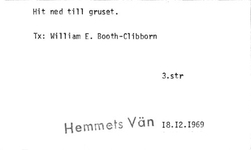 //// Hit ned till gruset. //// Tx: William E. Booth-Clibborn //// 3.str //// Hemmets V n 18.12.1969 ////