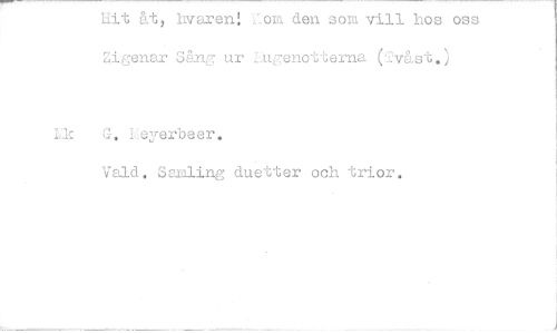//// LL;, 011i den som vill hos oss //// Zigenar Sånj ur _ugenotterna (ivåst.) //// Lk G,:Leyerbeer. //// Vald. Samling duetter och trior. ////
