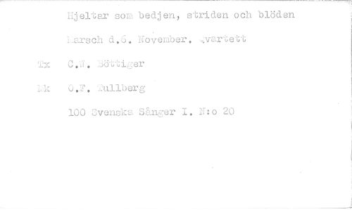//// Hjeltar som bedjen, striden och biöden Larsch d..6. November. ,,,vartett //// Tx ":äöttiuer //// 1,:k 0.F. '2ullberg //// 100 Svenska Sånger no 20 ////