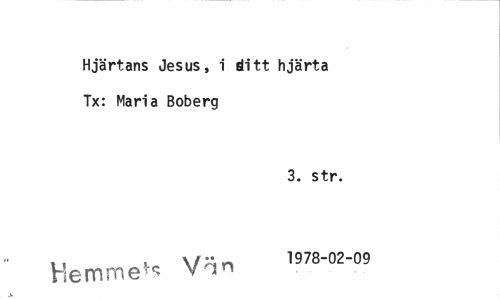 //// Hjärtans Jesus, i ditt hjärta Tx: Maria Boberg //// 3. str. //// liemmex,c; Vin 1978-02-09 ////