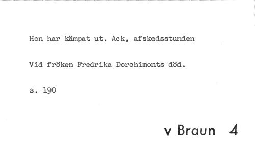 //// Hon har kämpat ut. Ack, afskedsstunden Vid fröken Fredrika Dorchimonts död. s. 190 //// v Braun 4 ////