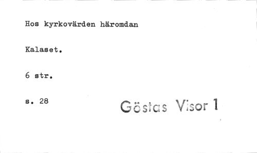 //// Hos kyrkovärden häromdan Kalaset. //// 6 str. //// s. 28 Gös cs V: or 1 ////