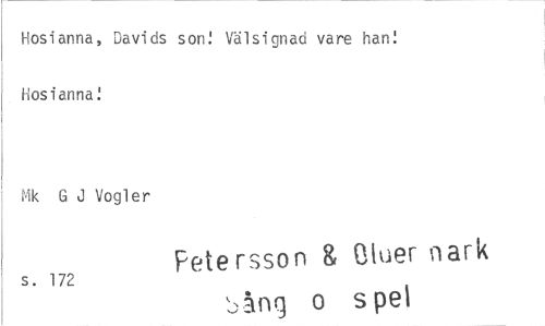 //// Hosianna, Davids son! Välsignad vare han! Hosianna! //// fik G J Vogler //// s. 172 Petersson g Cluer nark //// Ang o spel ////