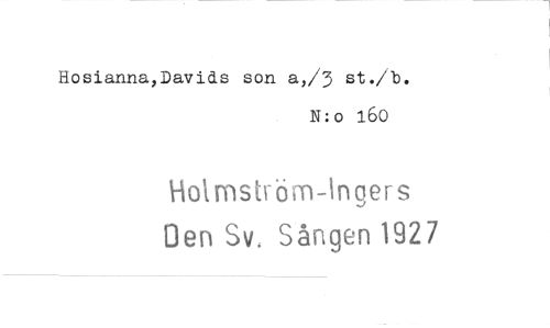 //// Hosianna,Davids son a,/3 st./b. //// N:o 160 //// Holmsb-öm-Ingers //// Den Sv. Sången 1927 ////