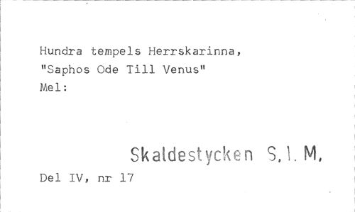 //// Hundra tempels Herrskarinna, "Saphos Ode Till Venus" //// Mel: //// Skaldestycken SJ. M, //// Del IV, nr 17 ////