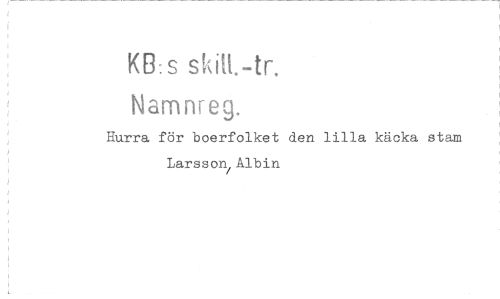 //// KB: s spill.-tr. //// Namnreg. //// Hurra för boerfolket den lilla käcka stam Larsson Albin ////