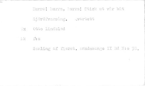 //// Uurra! Lurra, J:urra! Stick ut vår båt Sjöröfyars,Ing. ,Irartett //// 2x Otto Lindblad //// 1,1c j:o //// Sanling af fierst. mandssange II Bd N:o 39. ////