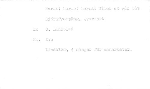 //// urra! Lurra! hurra: Stick ut vår båt Sjöröfvarsgtng. vart ett //// 2x 0. Lindblad //// Yk. D:o //// Lindblad, 4 sånger för mansröster. ////