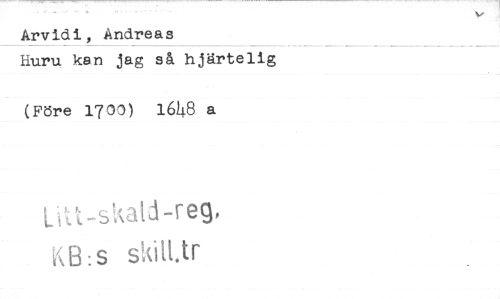//// Arvid i, Andreas //// Huru kan jag så hjärtelig (Före 179) 1648 a //// Utt-stutd-reg, //// KB:s skilt tr ////