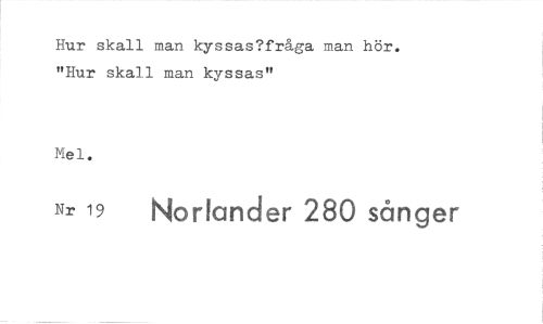 //// Hur skall man kyssas?fråga man hör. "Hur skall man kyssas" //// Mel. //// Nr 19 Norlander 280 sånger ////