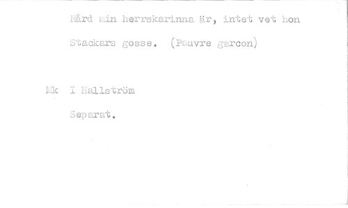 //// iLrd rin herrskarinna är, intet vet hon Stackars gosse. (Pauvre garcon) //// Lik i hallström //// Separat. ////